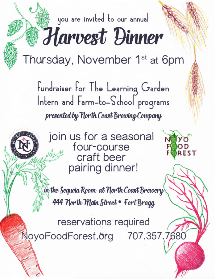 Join us for a seasonal four-course craft beer pairing dinner in The Sequoia Room! All proceeds benefit The Learning Garden intern and farm-to-school programs. Thank you to our host and sponsor, North Coast Brewing Company.